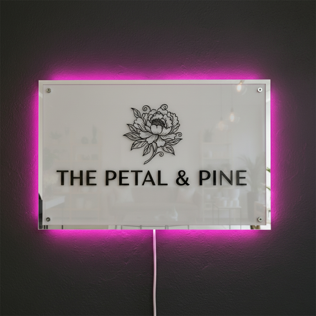 Give your brand a premium look with our custom Modern Acrylic Sign for Brands & Studios perfect for salons, boutiques, offices, spas, and studios. Each sign is made from high-quality glossy acrylic with a smooth finish and optional LED backlight for a soft glow effect.